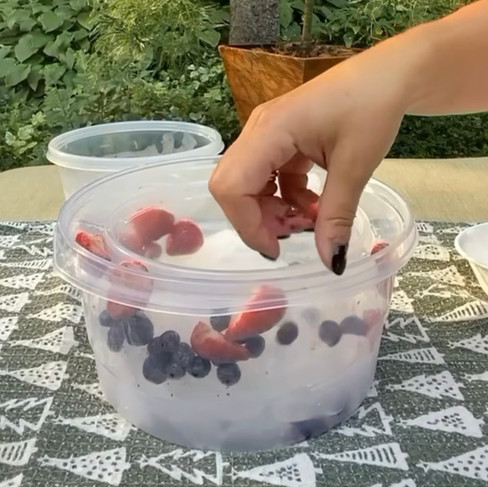 Double Trouble: Stack the second bowl on top of the first, gently pressing down to submerge the fruity goodness in water. (Use something heavy to hold it down like rocks or a can of fruit.)